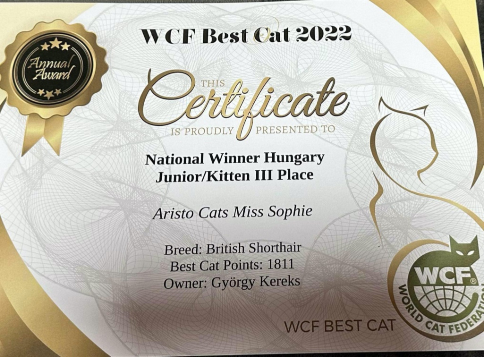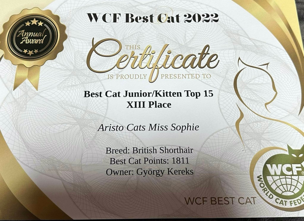 vagyis a közel 300 résztvevő cicus közül ő lett a